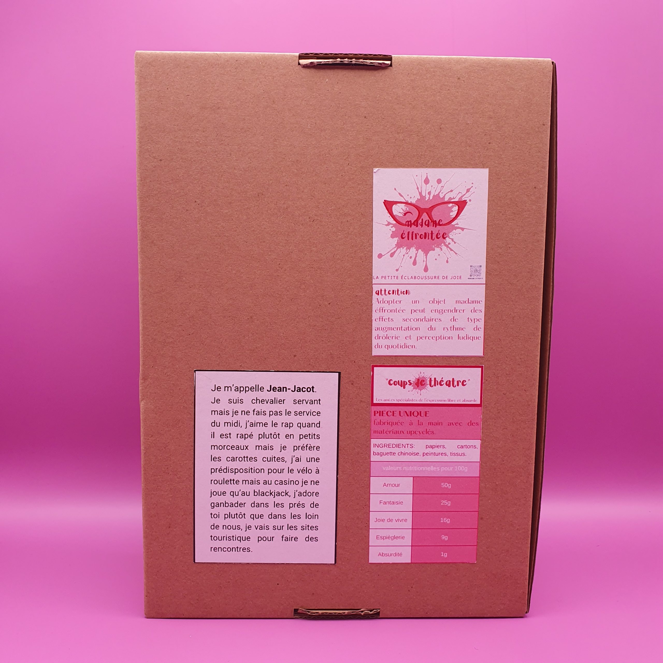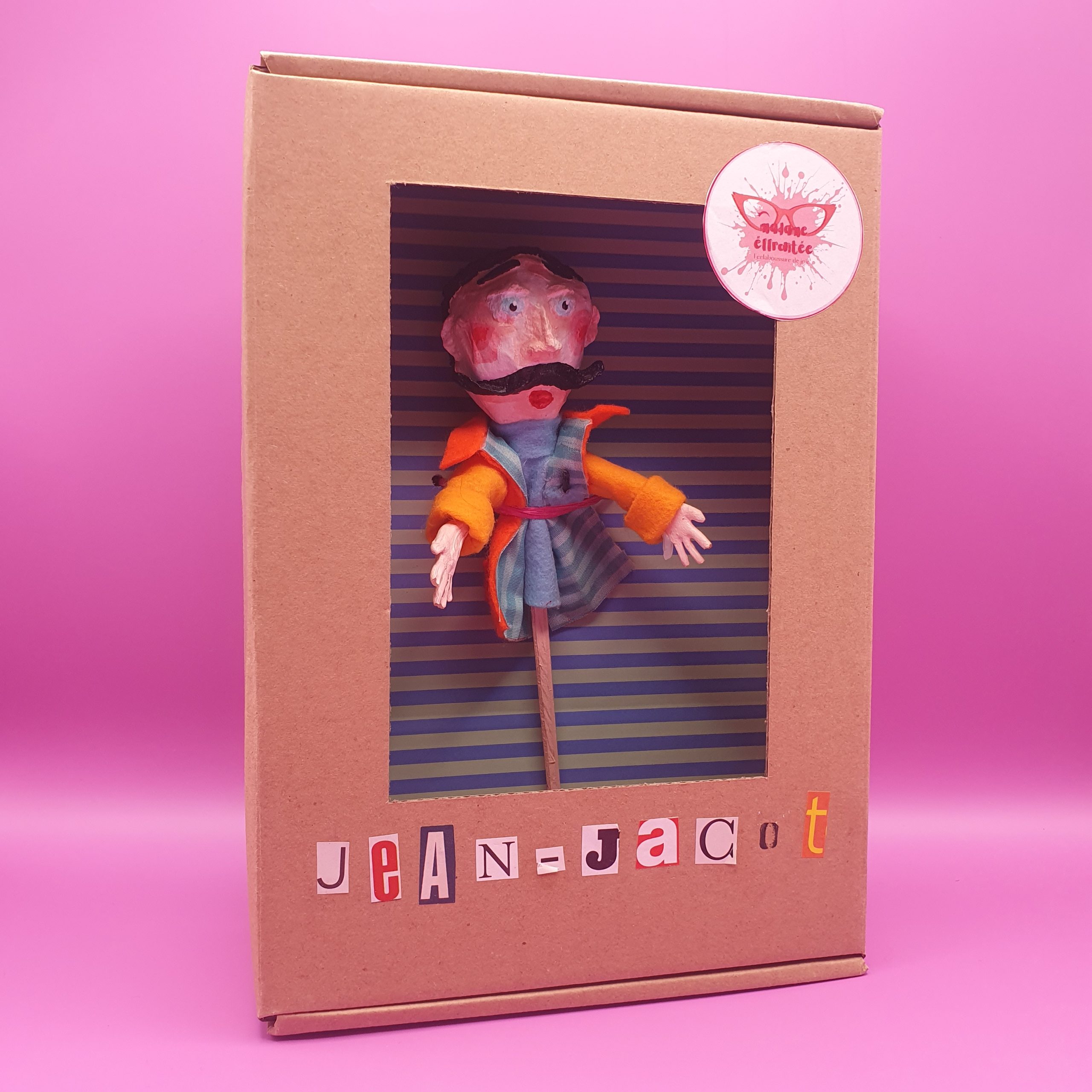 Confectionné à l’atelier avec des matériaux recyclés tel que baguette chinoise, chute de tissu, prospectus, rouleau de sopalin…la rionnette est l’indispensable camarade des jours moroses pour faire dérailler le train train quotidien.