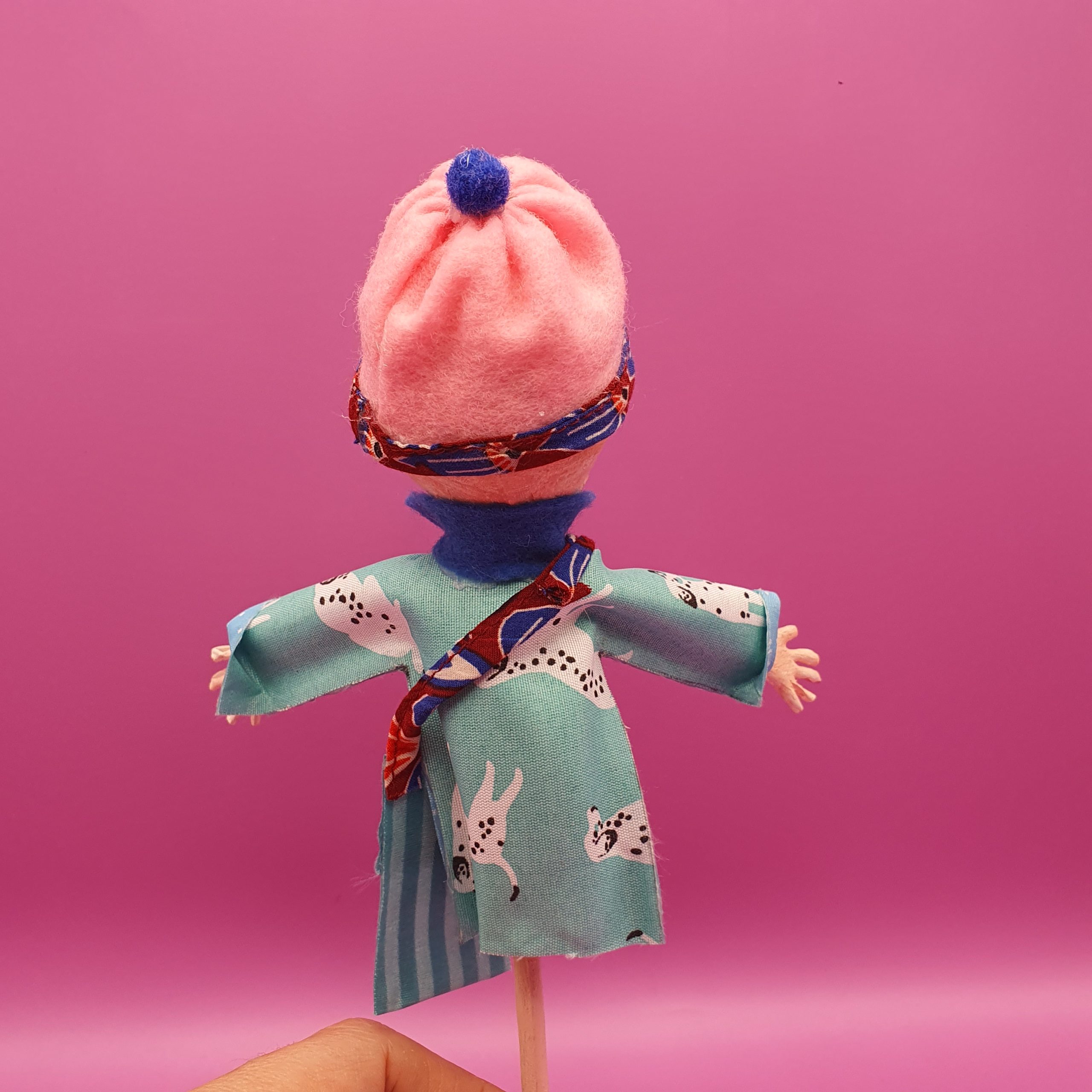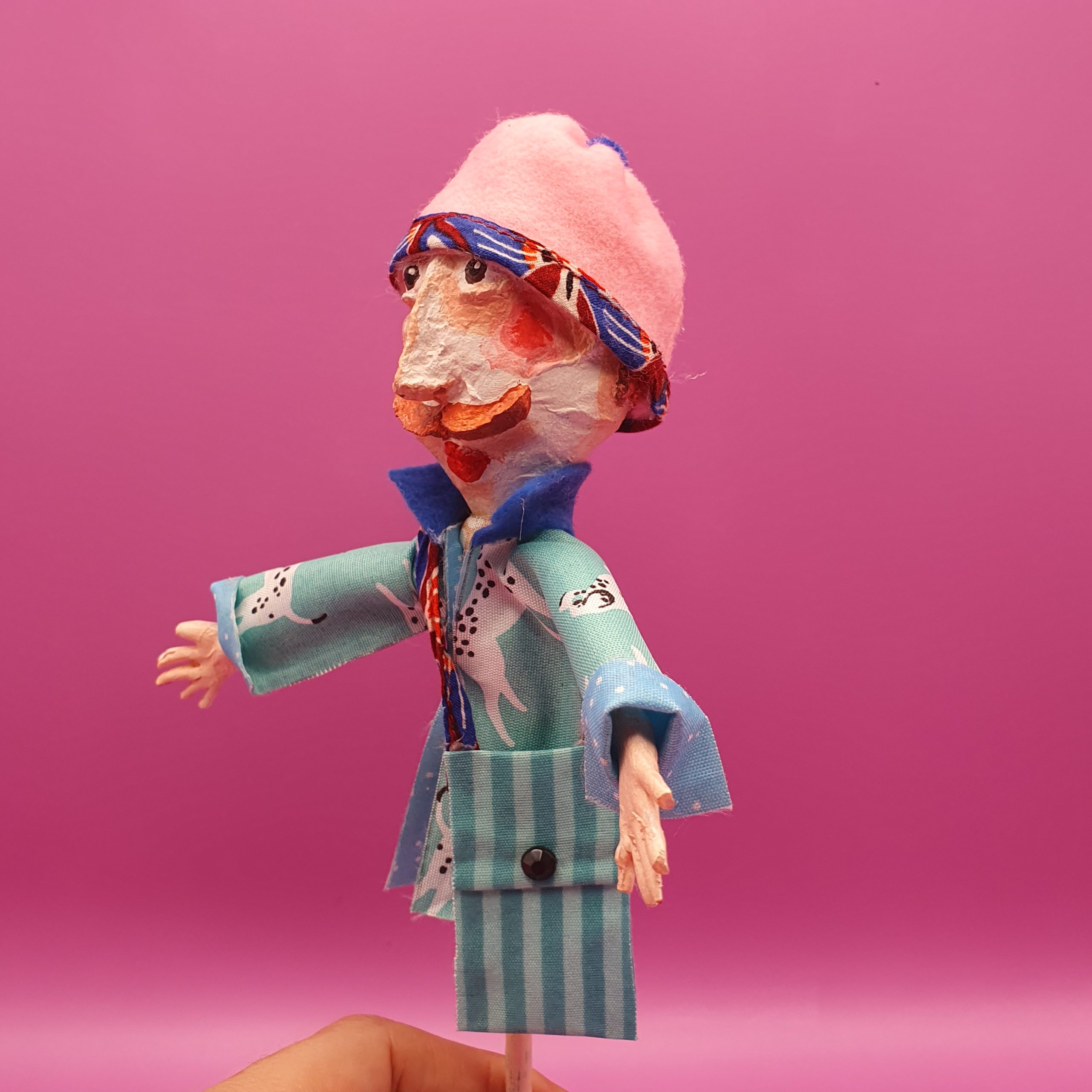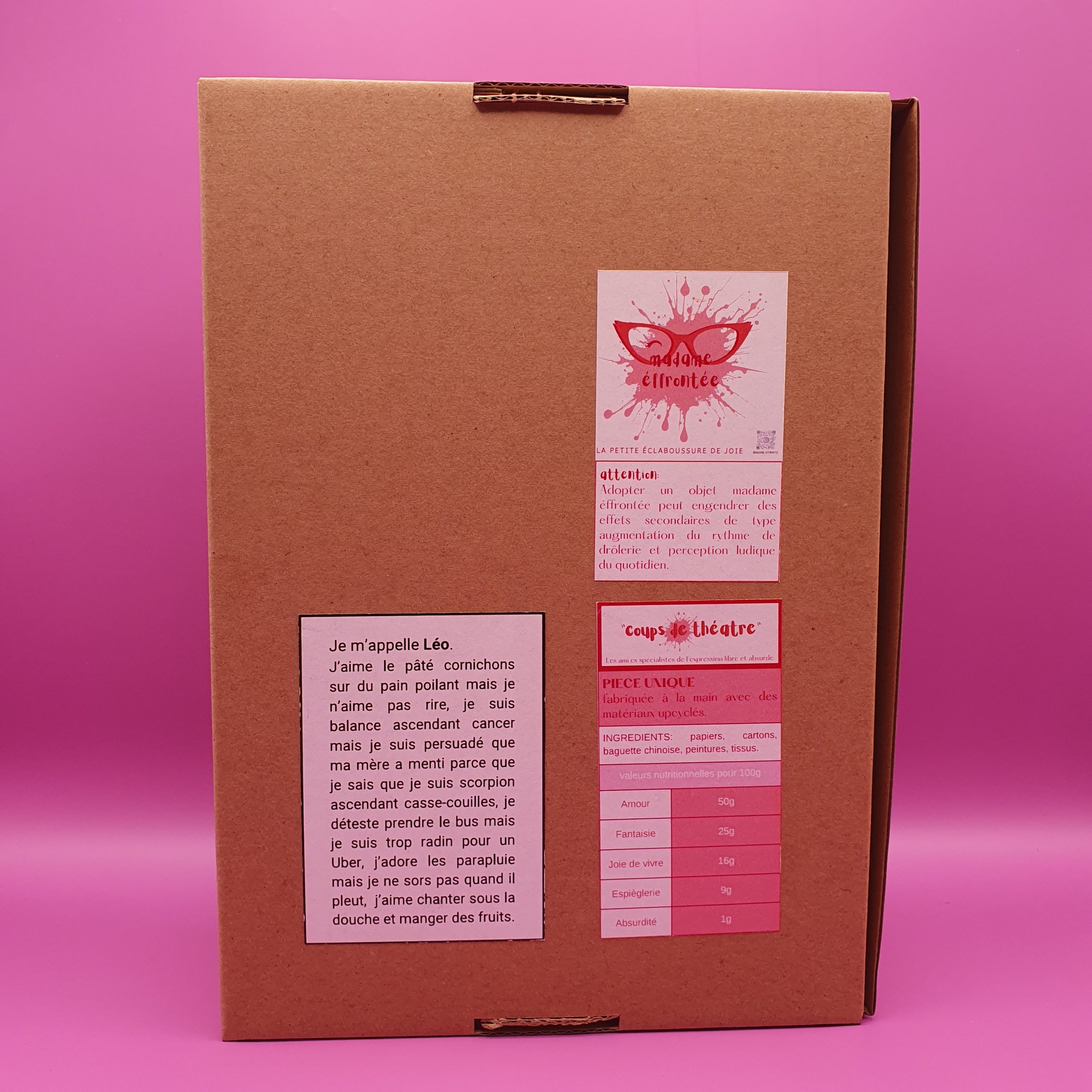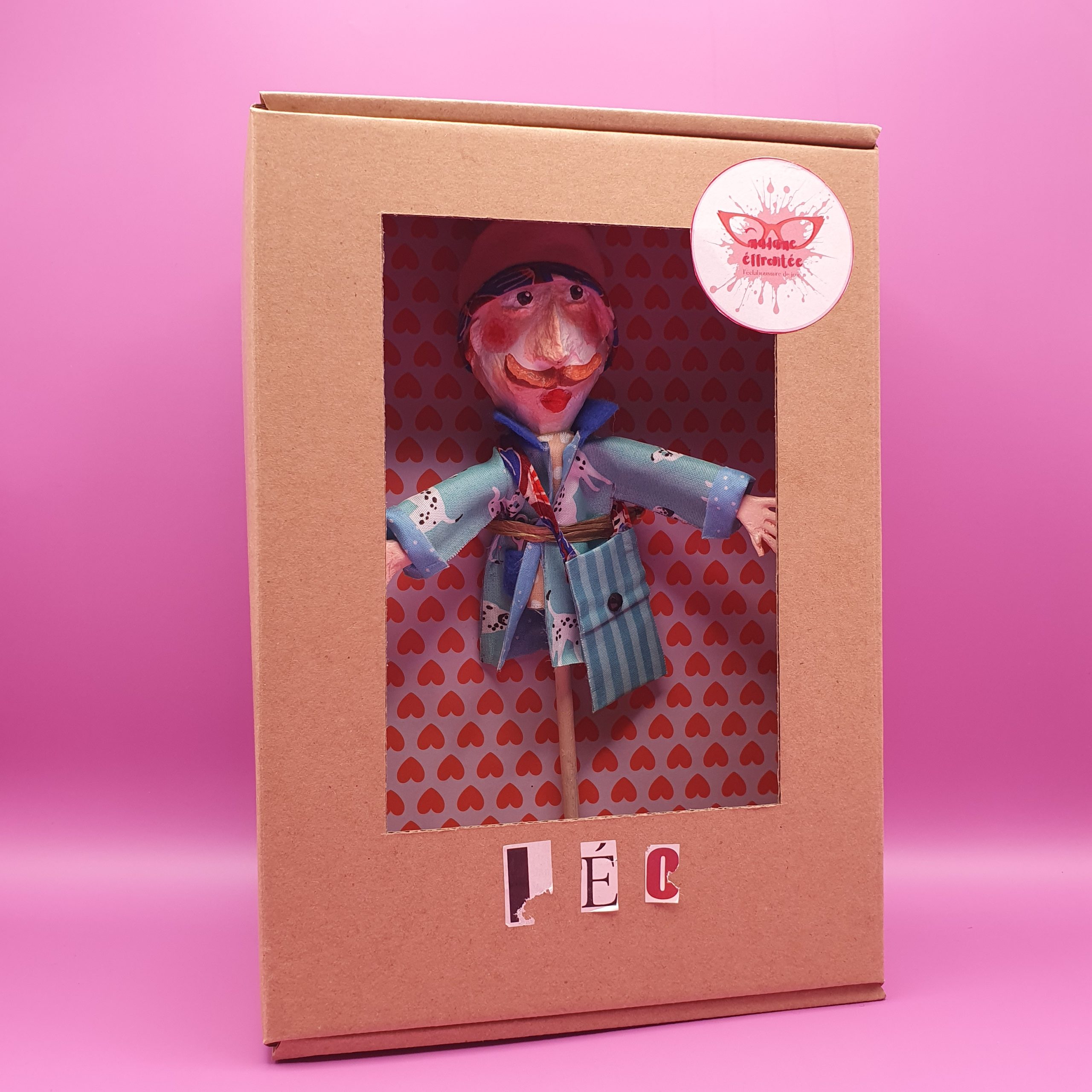 Confectionné à l’atelier avec des matériaux recyclés tel que baguette chinoise, chute de tissu, prospectus, rouleau de sopalin…la rionnette est l’indispensable camarade des jours moroses pour faire dérailler le train train quotidien.