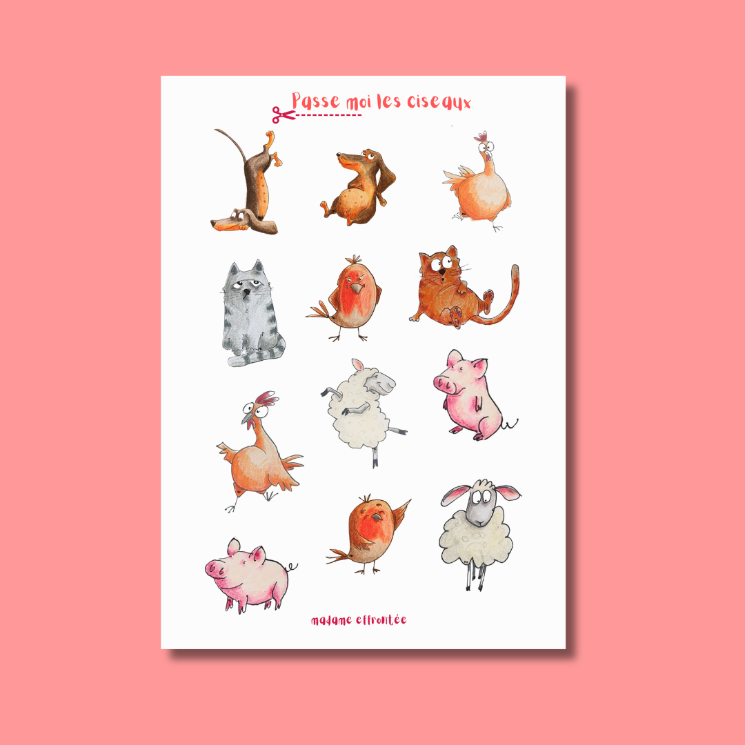 Cette planche format A4 est créée à partir de mes illustrations faites aux crayons de couleurs. Elle est ensuite scannée puis mises en page pour vous permettre de les découper et ainsi les utiliser dans vos projets créatifs.